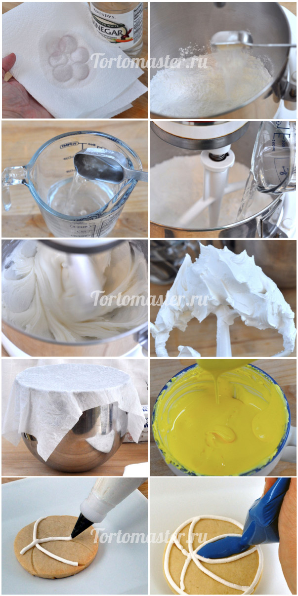 1. Протрите всё ваше оборудование (ложки, стаканы и т.д.) бумажным полотенцем, смоченным уксусом или лимонным соком, чтобы удалить возможный жир, так как он самый главный враг айсинга!