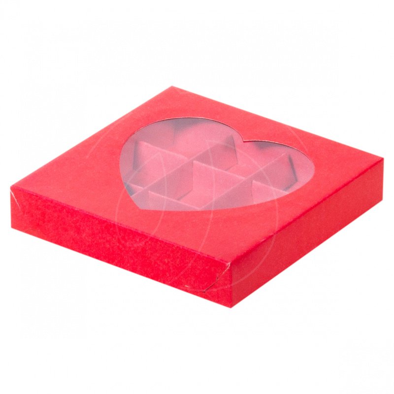 Доставка Коробка на 9 конфет с окном "Сердце" красная из магазина в вашем городе: