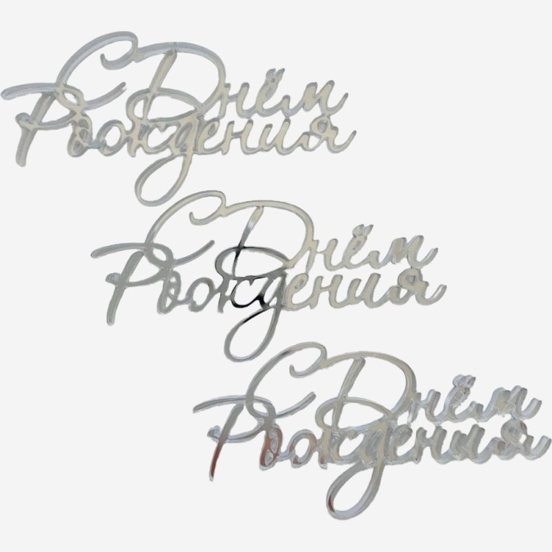Доставка Набор топперов декоративных акриловых "С Днём Рождения" Серебро 3 шт из магазина в вашем городе: